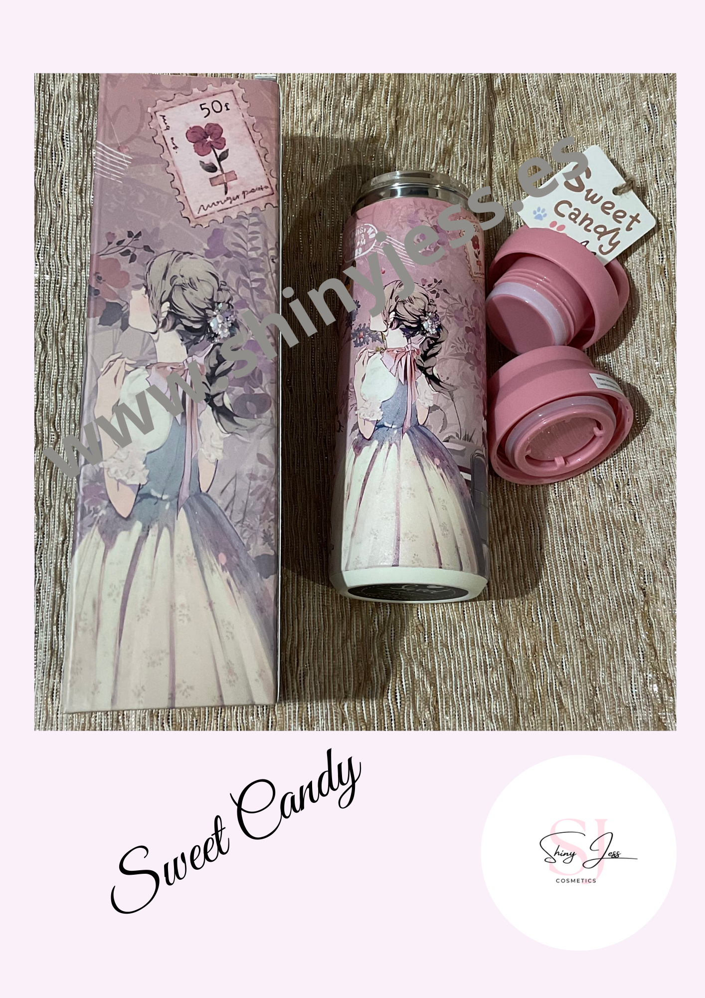 Botella Termo con Diseño Muñeca Sweet Candy y Base Antideslizante para Mujer.