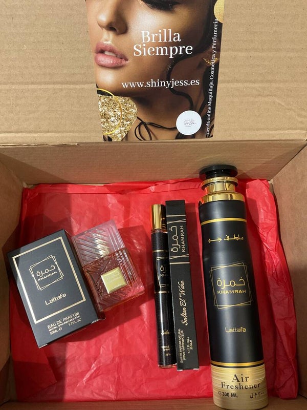 Set/Pack Regalo Khamrah mini Unisex by Lattafa 50 ml + Ambientador de regalo